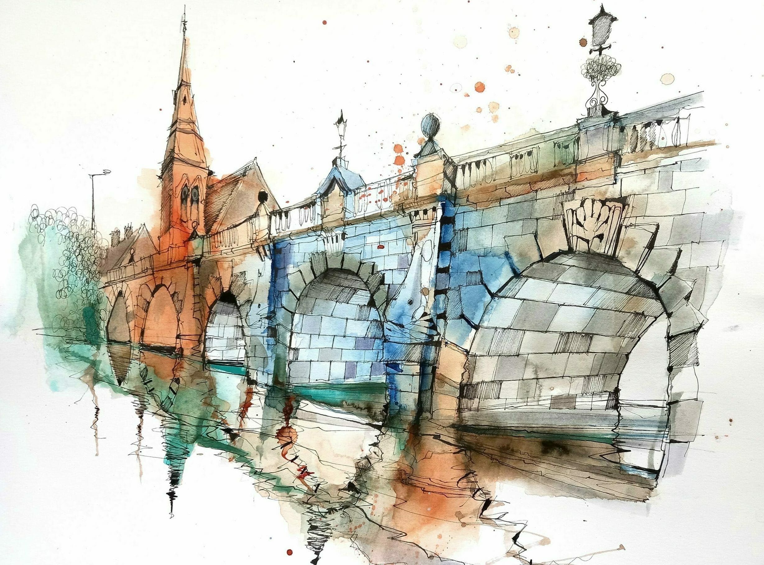 Preserving white areas or highlights in your urban sketches is crucial to creating a sense of light and contrast. You can achieve this by using masking fluid or by carefully painting around the areas you want to keep white. You can also try to work up the colour slowly to ensure that you don’t ‘over do’ it.