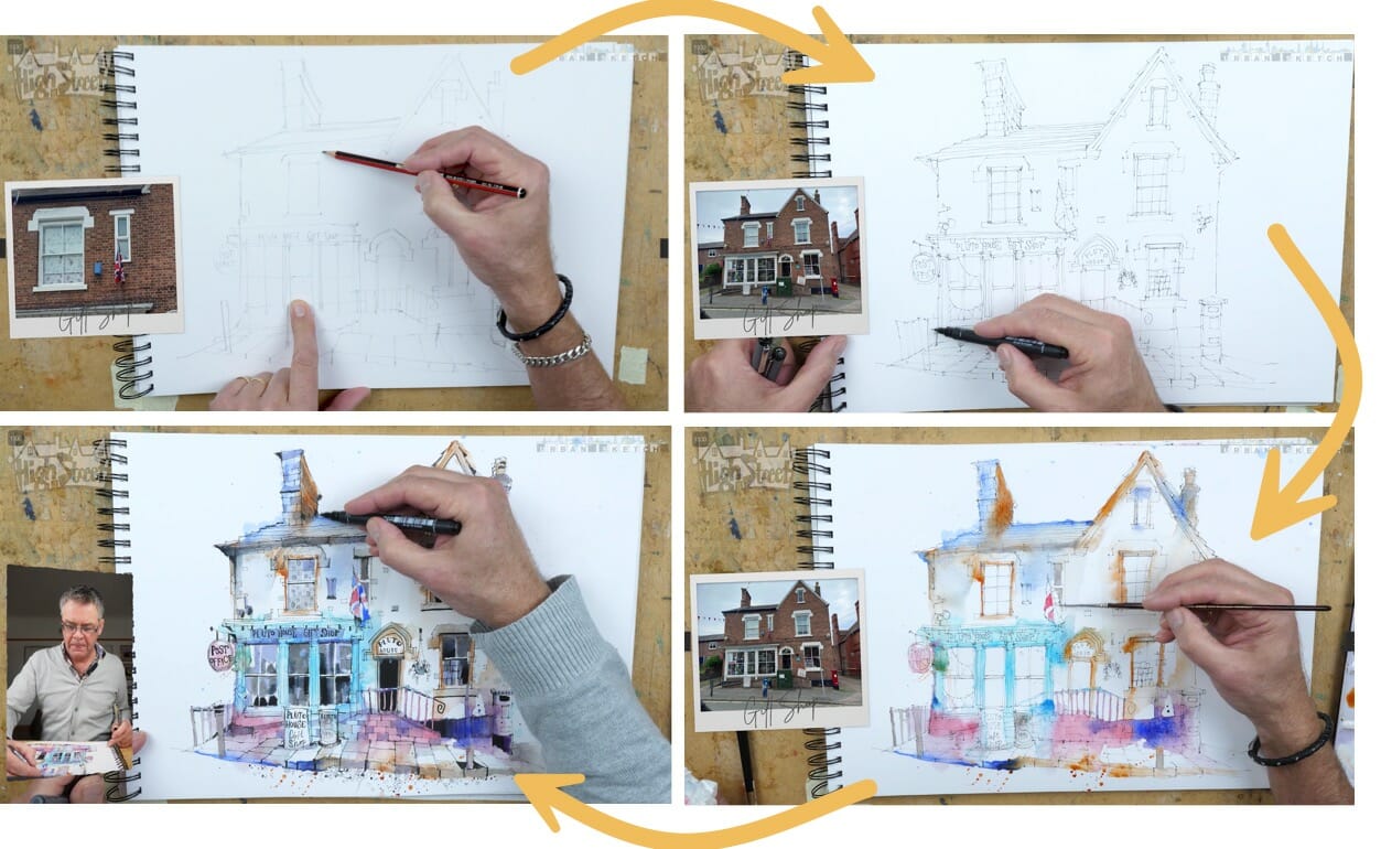 In High Street Sketch Course, Ian peels back the curtain and reveals his layer-by-layer methodology for sketching front elevations in your local neighborhood.