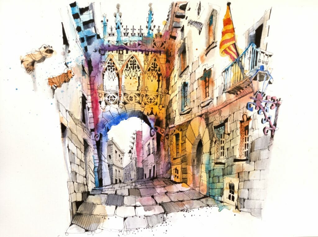 Beyond its architecture, Seville’s vibrant streets and lively plazas capture the essence of Andalusian life. The narrow lanes of Barrio Santa Cruz, the colourful tiles and orange trees lining the streets, and bustling markets like Mercado de Triana bring a dynamic energy to every scene. Iconic spaces like Plaza de España, with its intricate design and peaceful canals, create ideal settings for sketchers to immerse themselves in the city’s character.